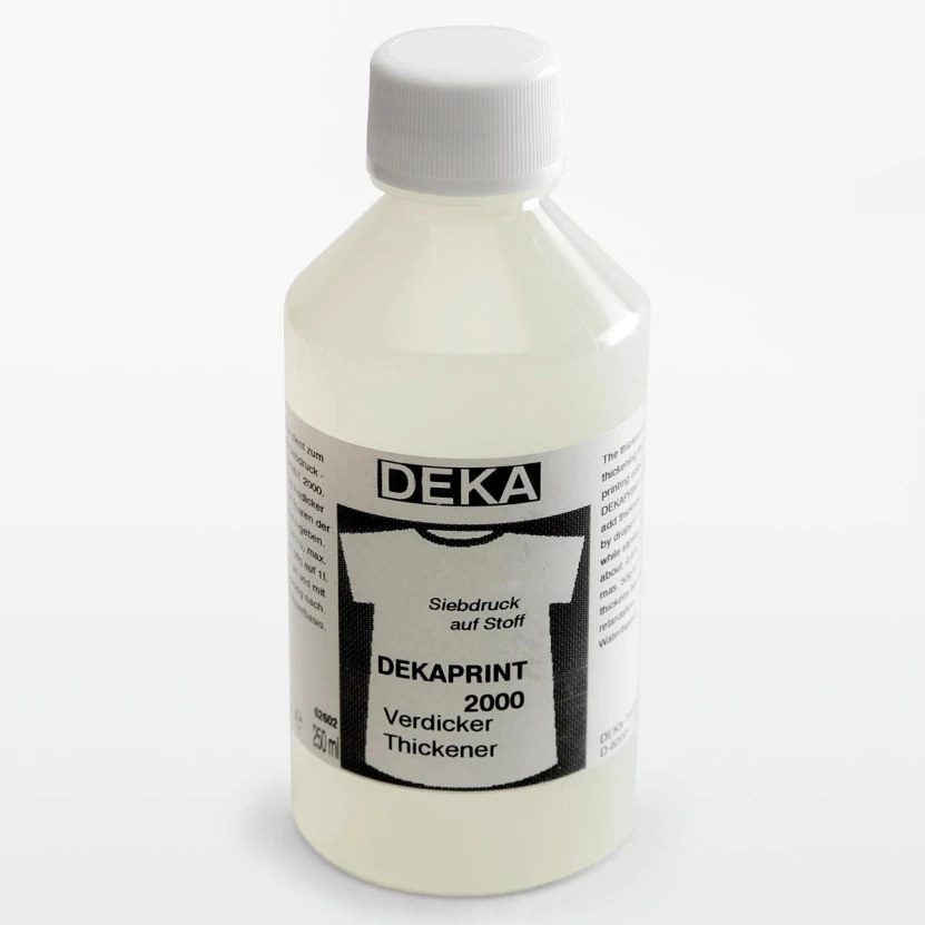 Zahusťovadlo DEKAPRINT slúži na úpravu viskozity sieťotlačových farieb DEKA. Pomocou neho je možné zvýšiť hustotu týchto bežne redších farieb pre dosiahnutie požadovaných tlačových vlastností.