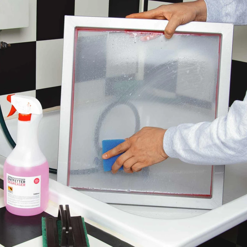 Pred nanesením emulzie je nutné sito dokonale odmastiť, pretože mastnota alebo nečistoty bránia správnemu priľnutiu emulzie. Použite špeciálny čistič určený pre sieťotlač, naneste ho na sito a nechajte krátko pôsobiť, potom dôkladne opláchnite vodou. Po odmastení nechajte sito uschnúť v čistom, bezprašnom prostredí. Správna príprava sita zaručuje, že emulzia bude rovnomerná a pevná, čo je kľúčové pre presnosť a trvanlivosť šablóny. Nepodceňujte tento krok, pretože akákoľvek mastnota môže znamenať problémy s tlačou aj po expozícii.