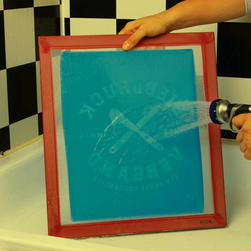 Po expozícii opláchnite sito vlažnou vodou, aby sa "nezapečená" emulzia na miestach motívu rozpustila a vznikla tak priechodná plocha pre farbu. Používajte stredný tlak vody, aby ste nepoškodili detaily. Vypláchnutím sa objaví motív vo forme priechodných miest na sieti. Pokiaľ sú malé nedostatky, je možné ich opraviť pomocou štetca a trochy emulzie, ktorá sa následne osvieti. Po vyvolaní nechajte sito uschnúť a skontrolujte výsledný motív, či je čistý a bez zvyškov emulzie.