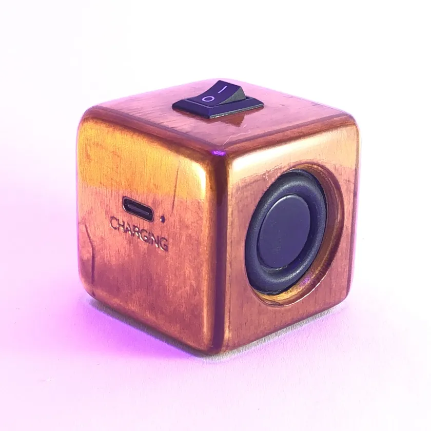 Ručne vyrobený drevený bluetooth reproduktor CUBE 3WČistý dizajn, kvalitný zvuk a poctivá ručná práca. Tento kompaktný reproduktor s rozmermi iba 4×4×4 cm je dôkazom, že aj niečo malé môže mať silný hlas. Telo tvorí brezová preglejka, ktorá je starostlivo zbrúsená, natretá šelakovou vrstvou a nakoniec navoskovaná a vyleštená do prirodzeného lesku. Každý kus vzniká s dôrazom na detail – bez sériovej výroby, s dušou remesla.