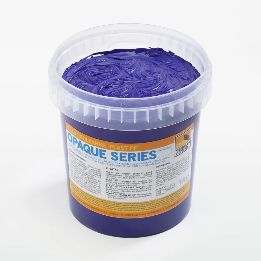 Farby PLAST PF výborne kryjú tmavé a čierne textílie. Iba fluorescenčné neónové farby a farby CMYK sú vo všeobecnosti menej krycie. Pokiaľ chcete tlačiť na tmavý textil, je nutné najprv podtlačiť bielou farbou FLASHWEISS .