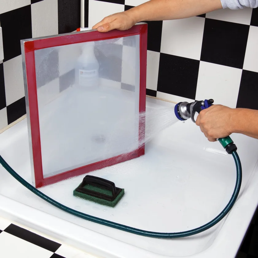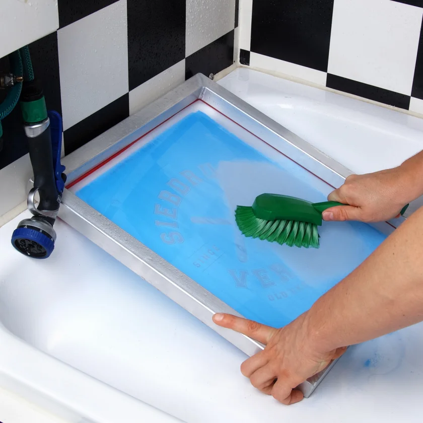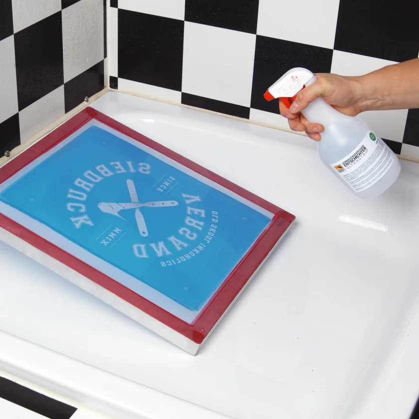 čističa sít . Týmto spôsobom môže prostriedok pôsobiť priamo na emulziu. Odvrstvovač pripravený na použitie sa potom hojne nanesie na obe strany sita pomocou rozprašovacej pumpičky. Po 3-5 minútach pôsobenia sa odporúča odstrániť zmäknutú emulziu drsnou hubkou. Sito je potom nutné opláchnuť silným prúdom vody (ideálne vysokotlakovým čističom). Pri použití dbajte na to, aby odvrstvovač na látke nezaschol. Najneskôr po odporúčanej dobe pôsobenia 3-5 minút by sa mal z látky vymyť.