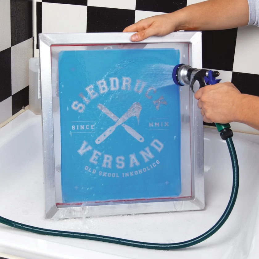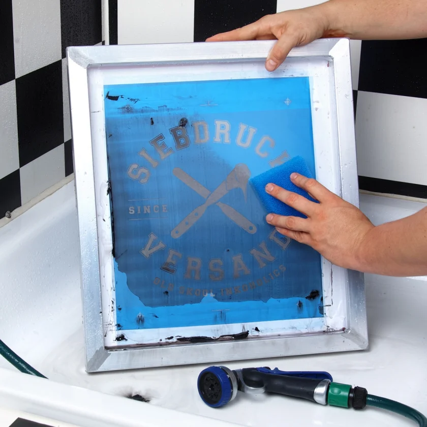 Po skončení tlače sa hrubé zvyšky farby najskôr odstránia vhodnou špachtľou. Potom sa použijú kuchynské utierky, staré tričko alebo suchá handrička, ktorá vsiakne hrubé zvyšky farby. Alternatívne je možné farbu tiež nahrubo opláchnuť vodou vo vani. Potom sa na obe strany nanesie čistič a zvyšky farby sa krúživými pohybmi zotrú z látky. Po úplnom rozpustení farby sa sito opláchne čistou vodou. Pred použitím fľaštičku s čističom vždy dôkladne pretrepte.