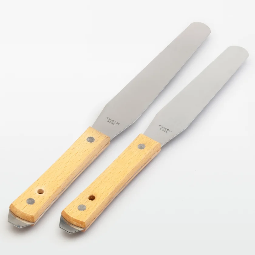 Špeciálne navrhnuté maliarske stierky pre miešanie a cielené nanášanie sieťotlačovej farby Tvar čepele so zosilnením smerom ku špičke umožňuje prácu pod plochým uhlom, čo vedie k veľmi tenkej vrstve farby. rukoväť je ergonomická a príjemne padne do ruky aj pri dlhšej práci.